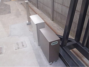 既存の手動門扉(W5970mm×H1760mm)を自動で開閉させたいとのご要望を受け賜りました。既存門扉にわずかな加工で自動開閉装置(CND−200)を取付、外部からはカメラ付きインターホンで遠隔操作・内部からはキー付きボックスから操作をおこないます。操作は3点式(開・亭・閉)。今まで日中は開放状態にしておりましたが、常時門扉を閉鎖する事でセキュリティの強化を図り、必要時な時だけ自動開閉を行う運用となりました。