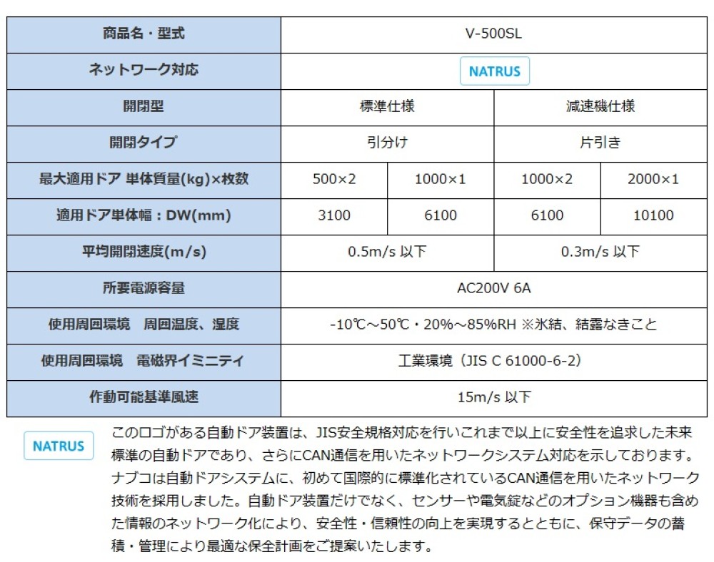 | 最大適応ドア単体質量 超重量扉 片引き:〜1000 引分け:〜500 | V-500SL 標準仕様納まり参考図(姿図&縦断面図) | V-500SL_standard_full | ダウンロード |